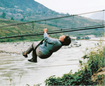 圖為20世紀80年代中期,李桓英前往云南省怒江傈僳族自治州瀘水縣看望病人時,乘著當?shù)卮迕褡灾频牧锼鲝臎坝康呐戏酵ㄟ^?!”本┦形麄鞑抗﹫D