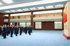 2021年6月18日,在中國共產(chǎn)黨歷史展覽館參觀“‘不忘初心、牢記使命’中國共產(chǎn)黨歷史展覽”結(jié)束后,習近平帶領黨員領導同志一起重溫入黨誓詞。