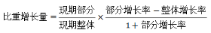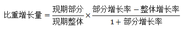 若部分增長(zhǎng)率>整體增長(zhǎng)率,則現(xiàn)期比重上升;若部分增長(zhǎng)率<整體增長(zhǎng)率,則現(xiàn)期比重下降。
