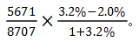接下來分析式子中較簡(jiǎn)單的部分3.2%-2.0%=1.2個(gè)百分點(diǎn),我們知道5671/8707計(jì)算結(jié)果小于1,那么與其相乘的結(jié)果小于1.2個(gè)百分點(diǎn);其次分母上的1.032大于1,計(jì)算的結(jié)果會(huì)更小,然后選擇數(shù)值比1.2小的B選項(xiàng)即可。