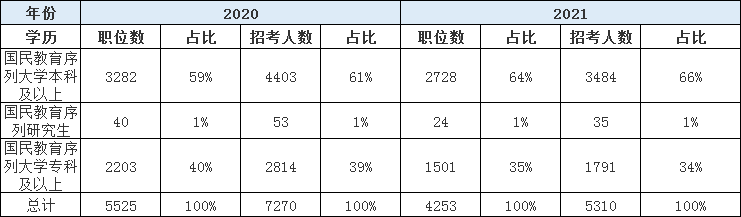 下面以2021年內(nèi)蒙古公務員考試報考學歷情況為例,供各位考生參考: