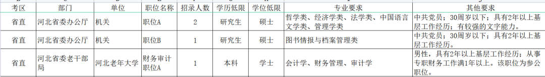 看到這里,好多同學說我們沒有報考這些專業(yè)的怎么辦?小編現(xiàn)在就對大家說,我們還有三成不限專業(yè)的崗位等著你。21年河北省考招錄有1619個職位,招錄2978人不限專業(yè),分別占總數(shù)的30.8%,35.7%。所以不用擔心了,總有一個崗位適合你~