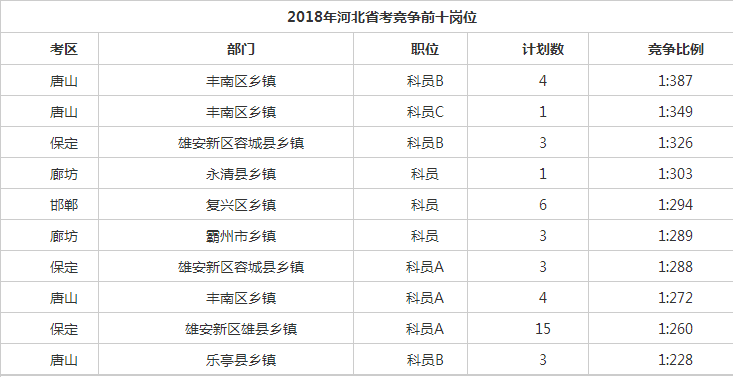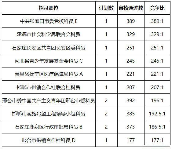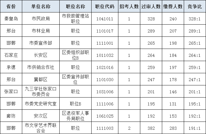 2021年河北省考競爭最激烈的十大職位(截至7月29日6時)