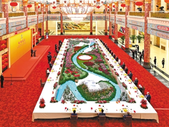 宴會在喜慶歡樂祥和的氣氛中進行。結(jié)束時,習近平和彭麗媛同國際貴賓們在《一起向未來》的樂曲聲中揮手道別。