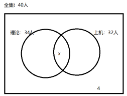 【例題2】40人參加計(jì)算機(jī)等級(jí)考試,只有理論和上機(jī)考試均及格方為通過。在理論考試中有34人及格,上機(jī)考試中有32人及格,兩次考試中都沒有及格的有4人。通過計(jì)算機(jī)考試的有多少人?( )