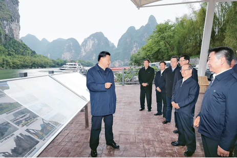 2021年4月25日至27日,中共中央總書(shū)記、國(guó)家主席、中央軍委主席習(xí)近平在廣西考察。這是25日下午,習(xí)近平在桂林市陽(yáng)朔縣漓江楊堤碼頭,了解漓江流域綜合治理、生態(tài)保護(hù)等情況。新華社記者鞠鵬/攝