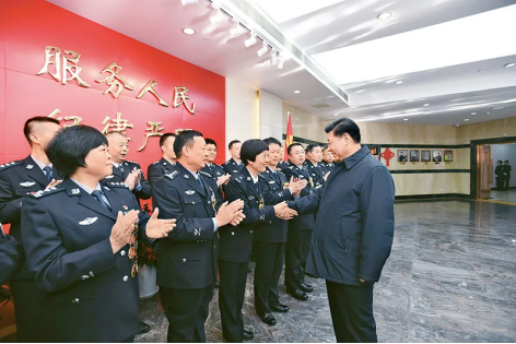 2019年2月1日,中共中央總書(shū)記、國(guó)家主席、中央軍委主席習(xí)近平在北京看望慰問(wèn)基層干部群眾,考察北京冬奧會(huì)、冬殘奧會(huì)籌辦工作。這是1日上午,習(xí)近平在北京市公安局,同公安英模和干警代表一一握手,向全國(guó)廣大公安干警致以新春祝福。新華社記者謝環(huán)馳/攝