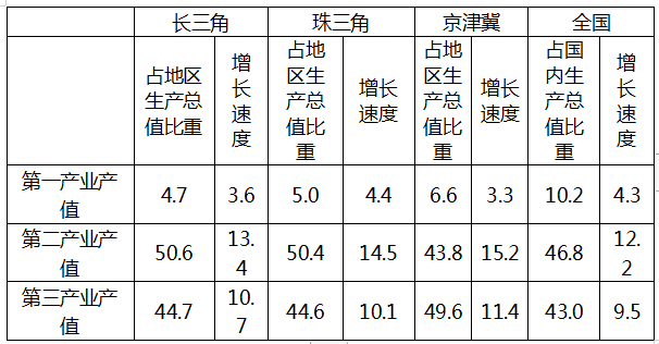 表 2010年三大經(jīng)濟(jì)圈產(chǎn)業(yè)結(jié)構(gòu)及增長速度(%)