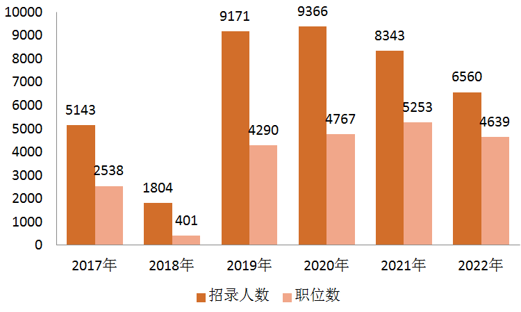 2022河北省考共提供4639個(gè)職位,招錄6560人,相比去年減少了1783人,從近六年招錄人數(shù)對(duì)比圖可以看出,河北省在2019、2020年達(dá)到招錄巔峰,均超過9千人,今年招錄人數(shù)雖然相比去年有所減少,但也遠(yuǎn)遠(yuǎn)超出2017、2018年的招錄規(guī)模。對(duì)于考生來說,最重要的是加強(qiáng)備考,提升實(shí)力,在考場(chǎng)上實(shí)戰(zhàn)雄風(fēng)!