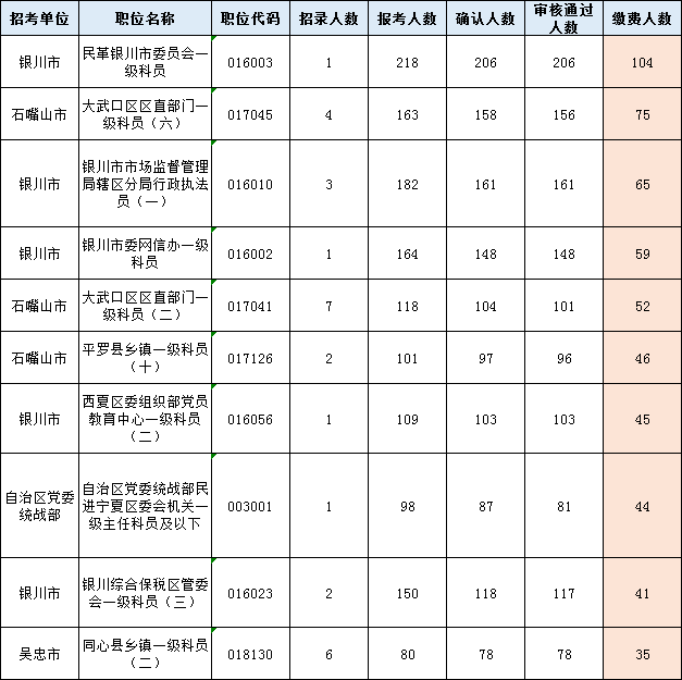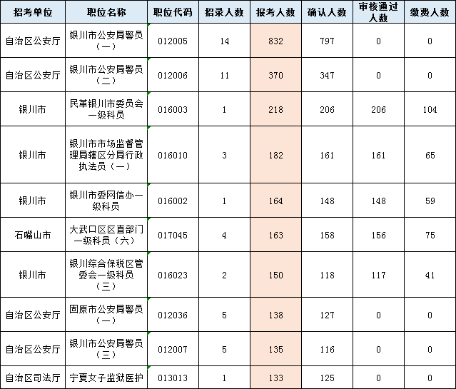 2022年寧夏公務員考試報名數(shù)據(jù)(2月24日10:00)