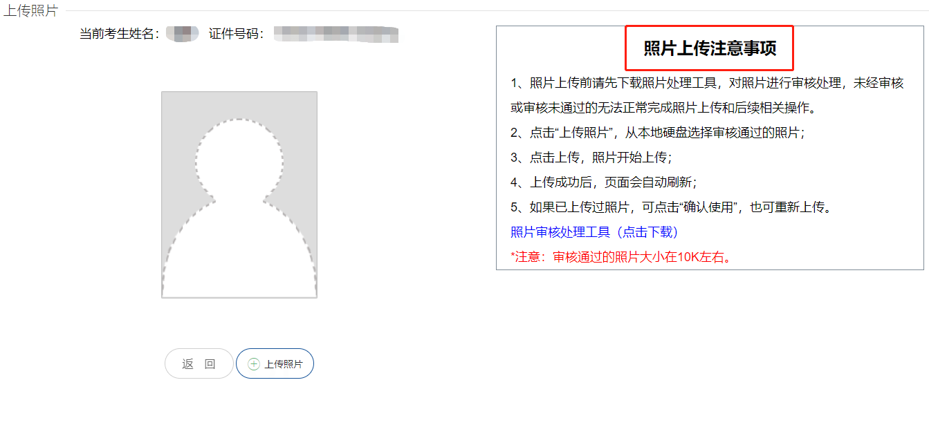 報(bào)考人員應(yīng)下載系統(tǒng)提供的“照片審核處理工具”對(duì)照片進(jìn)行處理,未通過“照片審核處理工具”進(jìn)行處理的照片無法上傳。報(bào)考人員應(yīng)對(duì)照片質(zhì)量負(fù)責(zé),如因照片質(zhì)量影響考試的,后果由報(bào)考人員承擔(dān)。