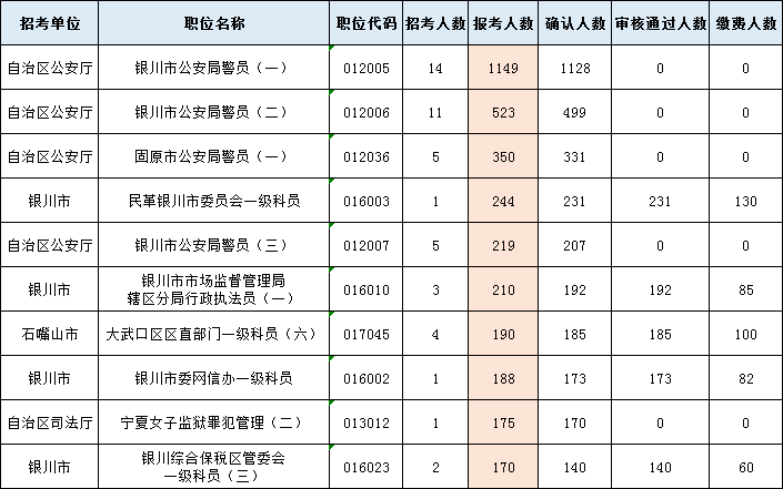 2022年寧夏公務(wù)員考試報名數(shù)據(jù)(2月25日10:00)