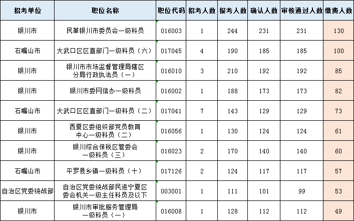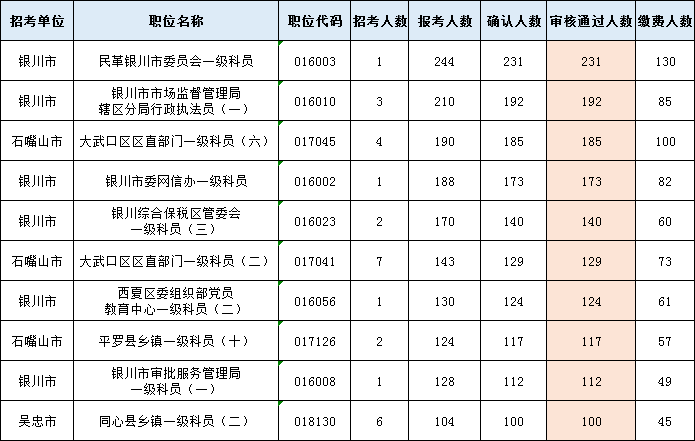 以下為審核通過人數(shù)最多的前十崗位