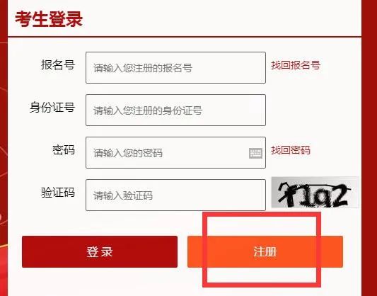 注冊完成后,考生需返回登錄界面,輸入自己的報名號、身份證號和密碼登錄報考系統(tǒng)。