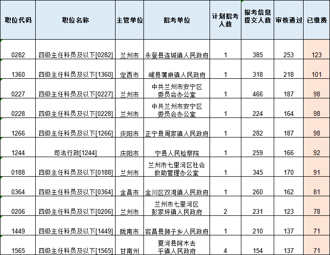 以下為繳費(fèi)人數(shù)最多的前十崗位: