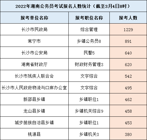 附件:湖南省2022年考試錄用公務(wù)員報名人數(shù)統(tǒng)計(截至3月4日8時)