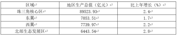 表1 2020年廣東省分區(qū)域地區(qū)生產(chǎn)總值及增長情況