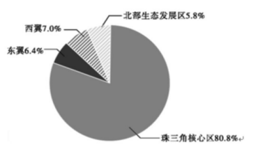 “十三五”期間,廣東區(qū)域協(xié)調(diào)發(fā)展成效明顯。但區(qū)域發(fā)展差距問題依然突出。以經(jīng)濟(jì)為例,2020年廣東省地區(qū)生產(chǎn)總值超11萬億元。其中珠三角核心區(qū)占比約80.8%,遠(yuǎn)超東翼、西翼和北部生態(tài)發(fā)展區(qū)之和。