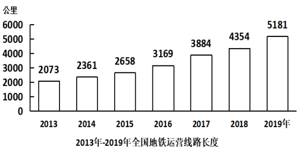 B.2019全國地鐵運營線路長度相比2016年增量是2016年相比2013年增量的兩倍以上