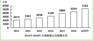 121.2014~2019年間,全國地鐵運營線路長度同比增長20%以上的年份有幾個?( )