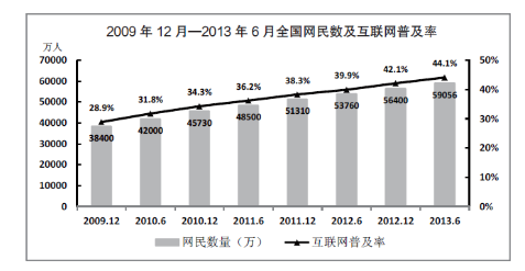 (2)2013年6月,全國互聯(lián)網(wǎng)普及率比2010年6月提高了12.3個(gè)百分點(diǎn)