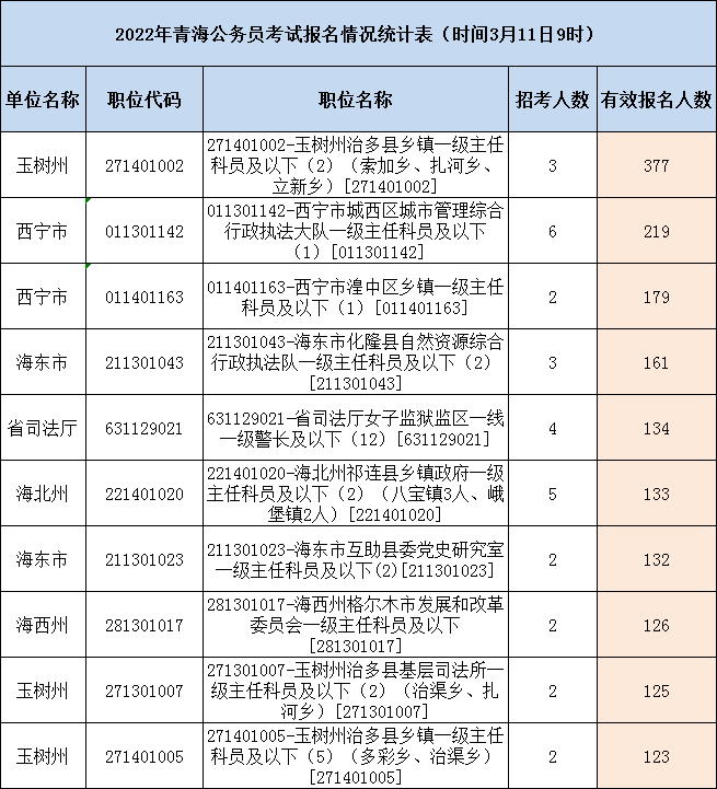 附件:青海省2022年公開考錄公務(wù)員考試報名情況統(tǒng)計表(截止時間3月11日9時)