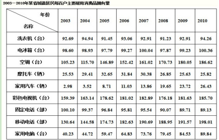 2003-2010年某省城鎮(zhèn)居民每百戶主要耐用消費(fèi)品擁有量