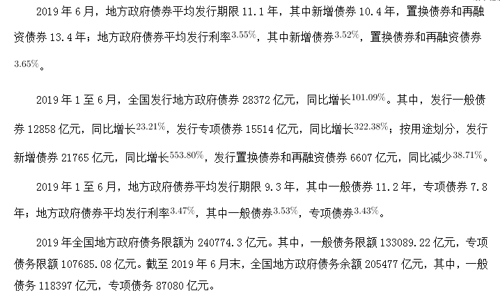 95、2019年6月,全國發(fā)行的地方政府債券比2018年6月多約:( )