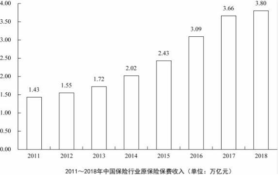 D.2011~2018年,中國保險行業(yè)原保險保費收入總計超過20萬億元