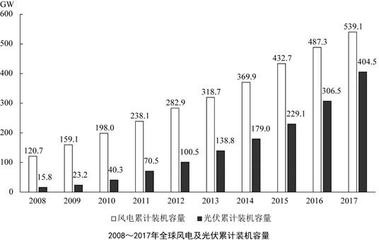 92、2009—2017年,風(fēng)電與光伏累計裝機容量總計同比增加100GW以上的年份有幾個?( )