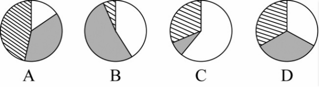 89、以下哪個餅圖最符合2017年4月T地區(qū)限額以上商品銷售額中不同規(guī)模的企業(yè)銷售額占比關(guān)系?( )