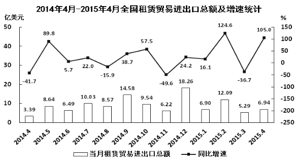 A、2015年4月全國租賃貿(mào)易進(jìn)出口額比2013年4月翻了一番