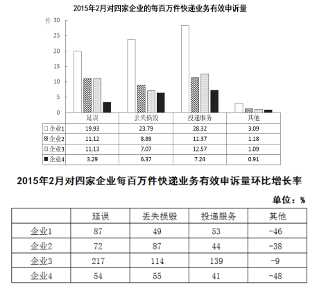 94.2015年2月4家企業(yè)中,有幾家企業(yè)的投遞服務(wù)有效申訴量占該企業(yè)當(dāng)月有效申訴量的比重高于上月水平( )