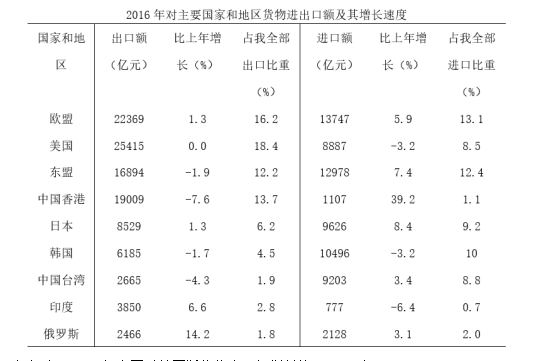114.2016年,中國對主要國家和地區(qū)進口額拉動全部進口額拉動最為明顯的是( )