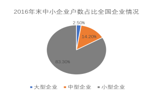 國家統(tǒng)計局數(shù)據(jù)顯示,2016年末,全國規(guī)模以上中小工業(yè)企業(yè)(以下簡稱“中小企業(yè)”)37.0萬戶,比2015年末增加0.5萬戶企業(yè),其中,中型企業(yè)5.4萬戶,占中小企業(yè)戶數(shù)的14.6%,小型企業(yè)31.6萬戶,占中小企業(yè)戶數(shù)的85.4%。
