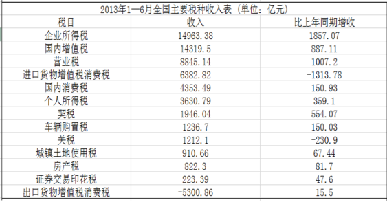 ④2013年我國上半年企業(yè)所得稅、國內(nèi)增值稅兩項之和超過同期稅收總收入的50%