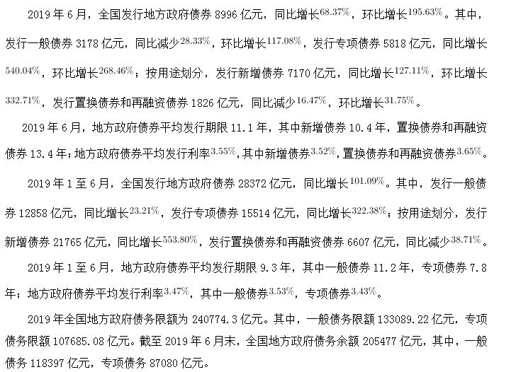 102.2019年6月,全國發(fā)行的地方政府債券比2018年6月多約:( )
