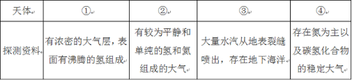 閱讀表格,依據(jù)探測(cè)資料判斷將來(lái)最有可能孕育生命的天體是( )