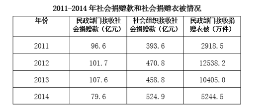 109.2015年全年接收社會捐贈款的同比增長率較2014年( )。