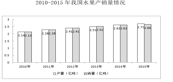 C、“十二五”期間,我國每年的水果產量都高于銷量