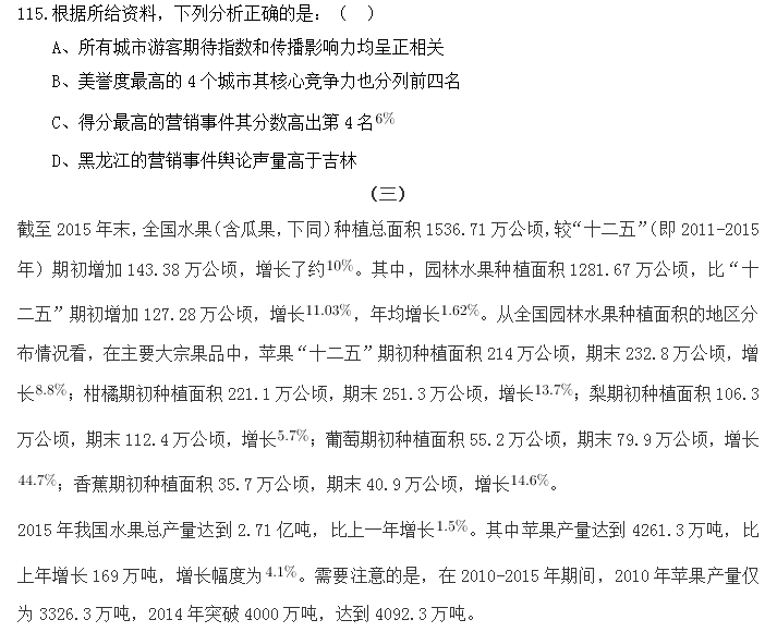117.對“十二五”期間水果種植面積增長貢獻最大的果品是:( )