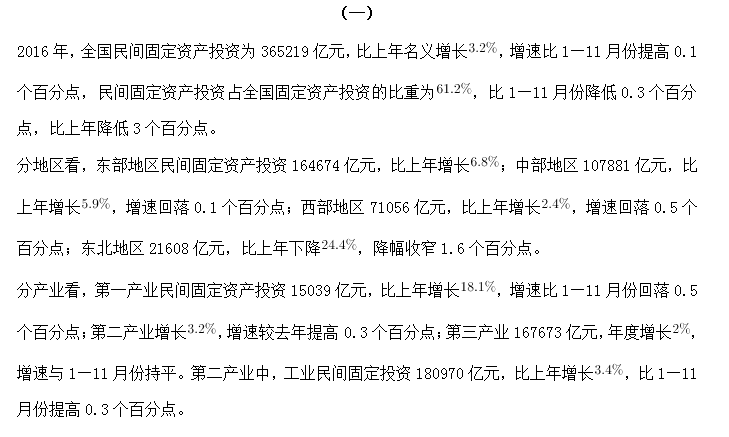 A、2016年度,三大產業(yè)中,第三產業(yè)民間固定資產投資月增速最為平穩(wěn)