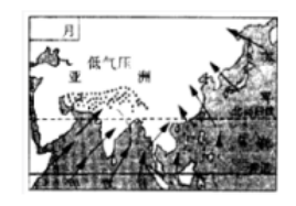 17.如圖所示,應(yīng)為亞洲東部哪個月的氣壓和風向圖:( )