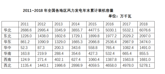 123.2014年末~2018年末,西部地區(qū)(含西南和西北)風力發(fā)電累計裝機容量年均增長:( )