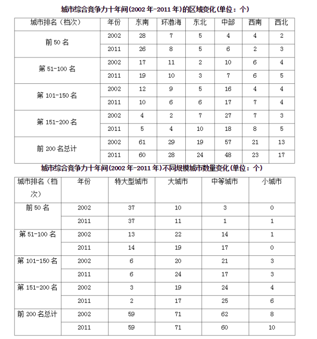 92.與2002年相比,2011年 地區(qū)的城市綜合競(jìng)爭(zhēng)力前200名的城市數(shù)量下降最為顯著。( )