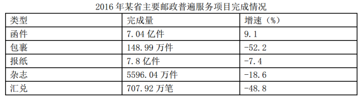 B.2016年該省主要郵政普遍服務(wù)項目均出現(xiàn)下滑