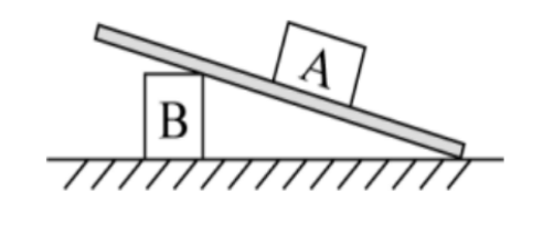 77.如圖,物體A、B分別位于木板上下方,且處于靜止狀態(tài),如果將物體B往左移動一段距離,但仍位于木板下方,則下列說法準確的是:( )
