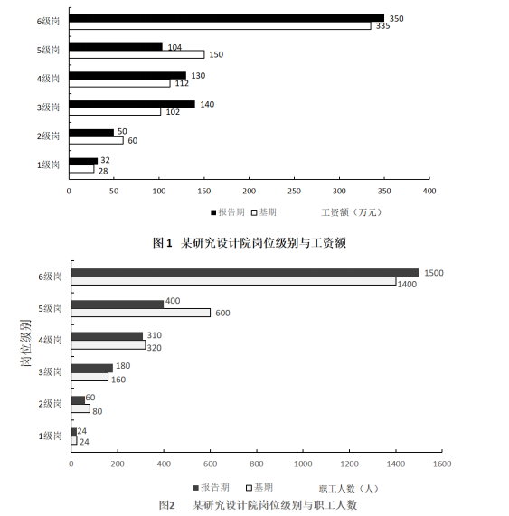 某研究設(shè)計(jì)院向不同崗位級別職工支付的工資額以及該院職工人員結(jié)構(gòu)資料分別如圖1和圖2。根據(jù)資料回答問題。