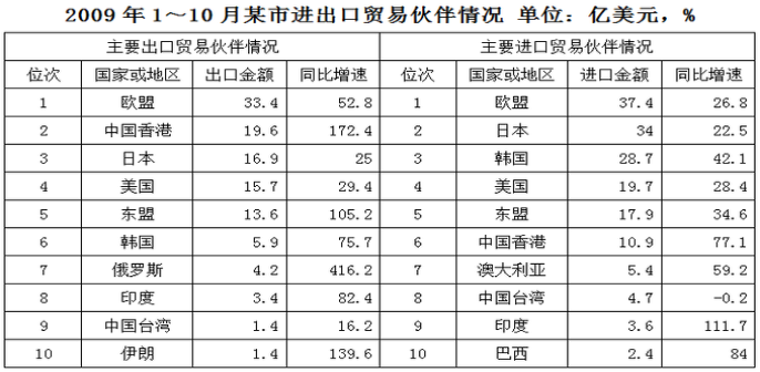 111.2009年1-10月,該市對俄羅斯的出口金額比2008年同期約凈增多少億美元:( )