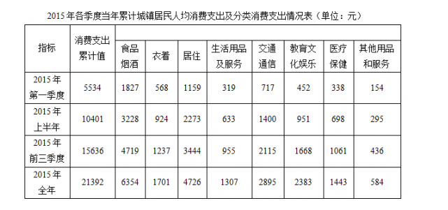 96.2015年,城鎮(zhèn)居民人均消費(fèi)支出最少的季度是:( )